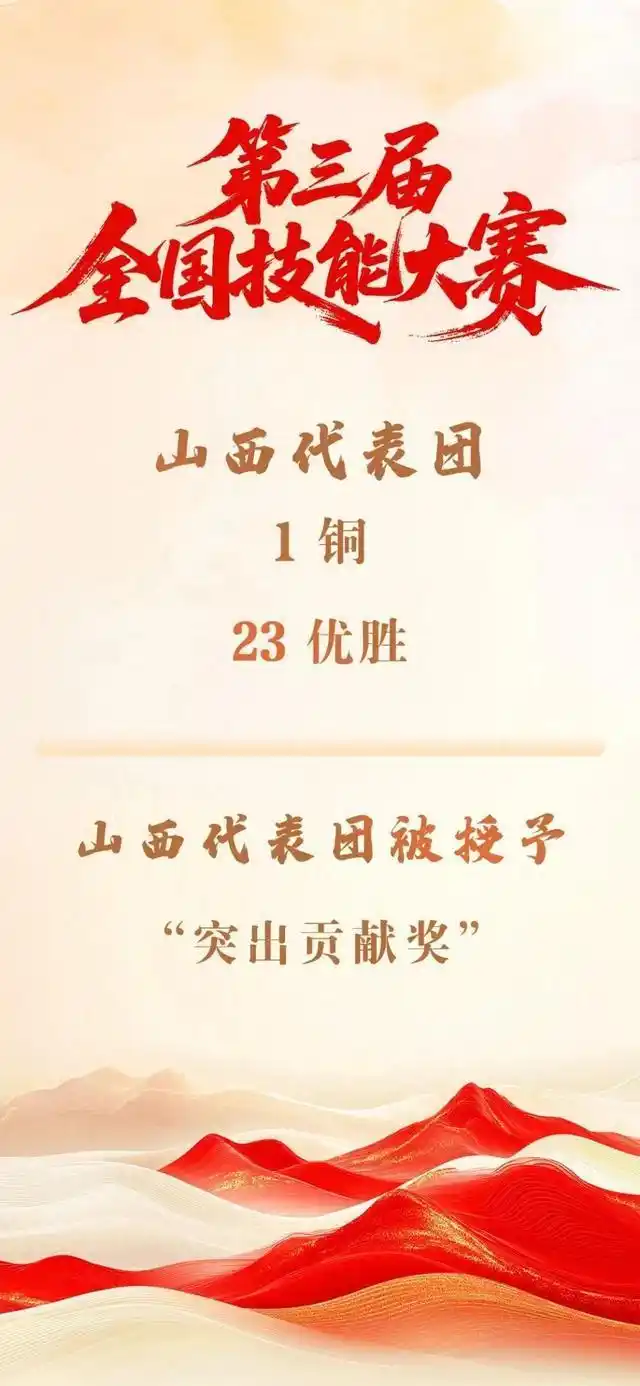9月23日,以“技能照亮前程”为主题的第三届全国技能大赛在河南郑州圆满落下帷幕。经过激烈角逐,山西代表团的选手最终取得1个铜奖23个优胜奖的成绩。
