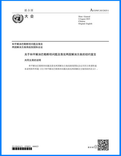 7月举行的高级别国际会议,是在加沙战争持续、两国方案前景日益黯淡的背景下召开的。