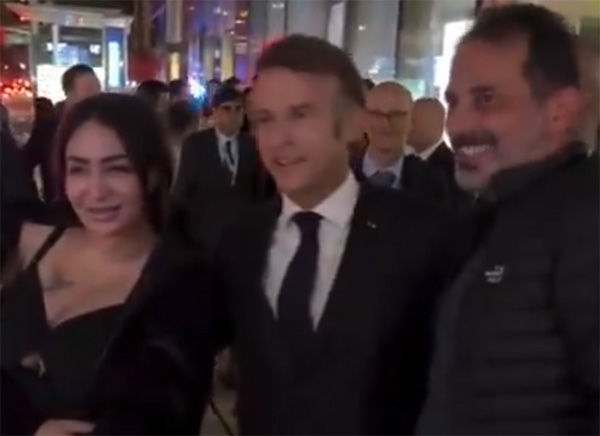 马克龙在纽约街头与路人合影 视频截图