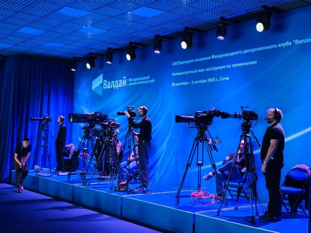 9月29日,俄罗斯索契,第二十二届瓦尔代国际辩论俱乐部年会在俄罗斯索契开幕,图为会议现场摄影记者在工作。中青报·中青网驻俄罗斯记者 赵祺/摄
